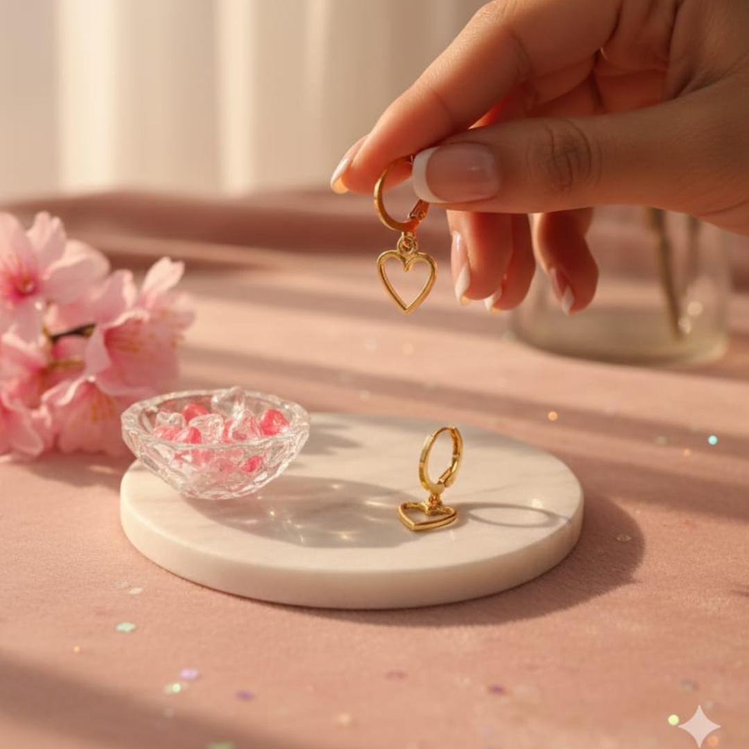 Elegant Gold Heart Hoop Earrings for Women | Lightweight Daily Wear Earrings | Romantic Minimal Jewelry