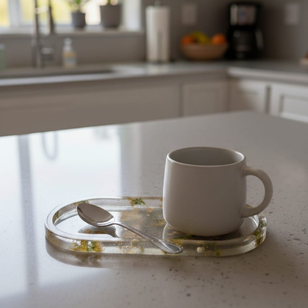 Bring a touch of elegance to your home with this handmade resin decorative tray, crafted with premium clear resin and embedded with real dried flowers, botanicals and gold flakes.