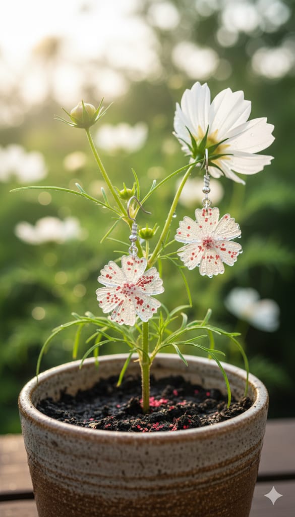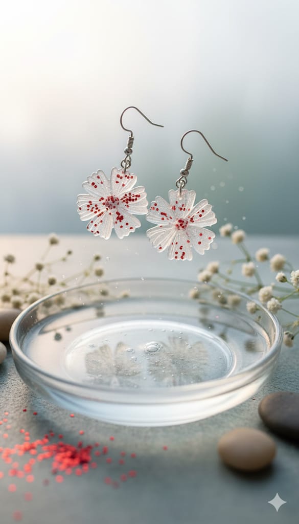 Bring elegance and freshness to your style with these handmade resin flower earrings, designed with delicate transparent petals and subtle red details. These lightweight dangle earrings are perfect for daily wear, parties, or gifting. Crafted with care, they combine durability with a unique floral charm, making them a standout addition to your jewelry collection.