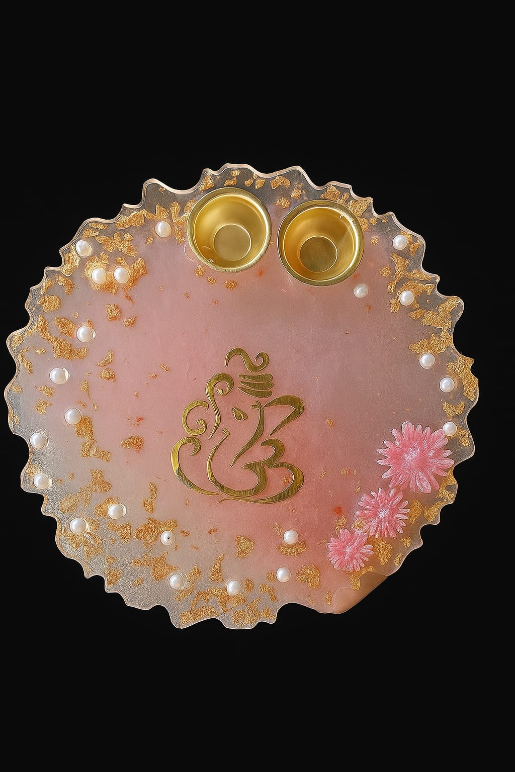 Handmade Resin Puja Thali with Ganesha Design & Pearl Detailing